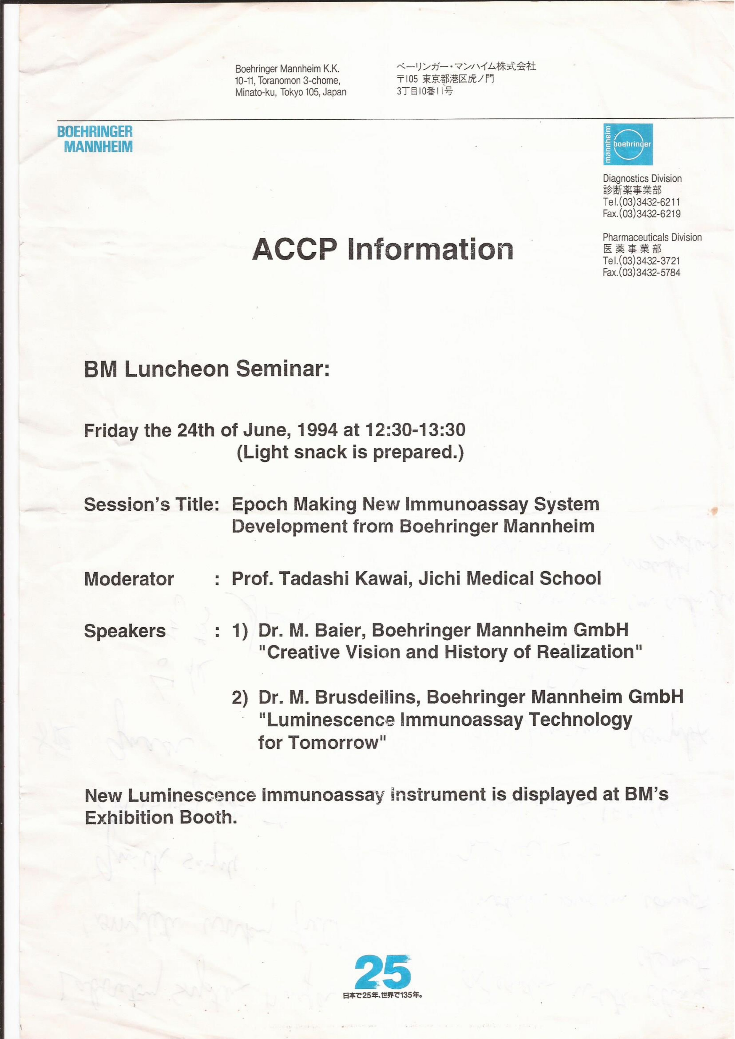 3rd ACCP 1994 Taiwan 3rd ACCP1994 Taiwan The Third Asia Congress of Clinical pathology, 25 June 1994 During the session Dong Hee Cho, M.D. made presentation Dr. Tjin-Shing Jap presenting trophy to the speaker The social time showing Marionette The Third Asia Congress of Clinical pathology, 25 June 1994 The social time The delegates from Indonesia on 24 June 1994 The social timeThe Delegates from Korea on 24 June 1994 Back